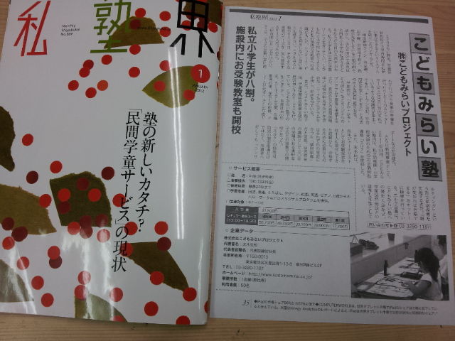 月刊「私塾界」というのは、塾の業界誌なのです。近年、塾が学童機能を併設しはじめたので、この業界誌でもとりあげているようで